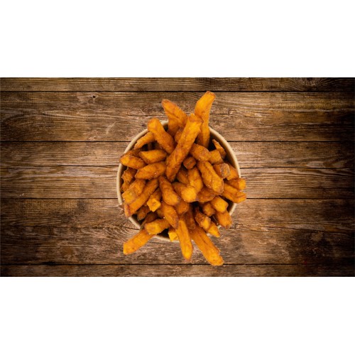 Najlepsze frytki z batatów powstają z najlepszych batatów! W The Fry używamy wyselekcjonowanych odmian prosto z pola. Frytki smażymy w wysokiej jakości oleju roślinnym. Nasze frytki są złociste i chrupiące z zewnątrz, a jednocześnie kremowe w środku. Rozmiar do wyboru.